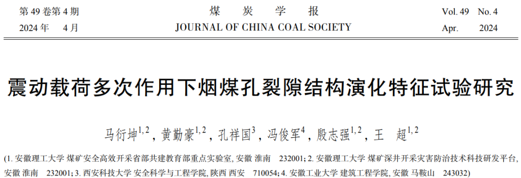 [1]马衍坤, 黄勤豪, 孔祥国, 等. 震动载荷多次作用下烟煤孔裂隙结构演化特征试验研究[J]. 煤炭学报, 2024,49(4):1882-1893.