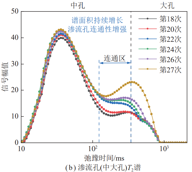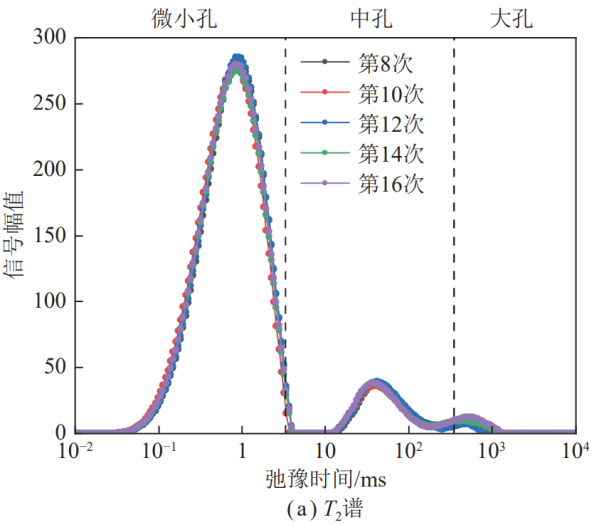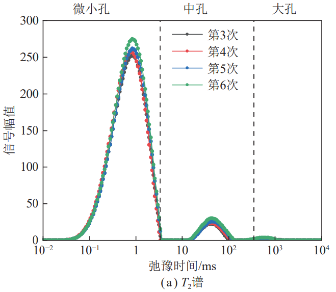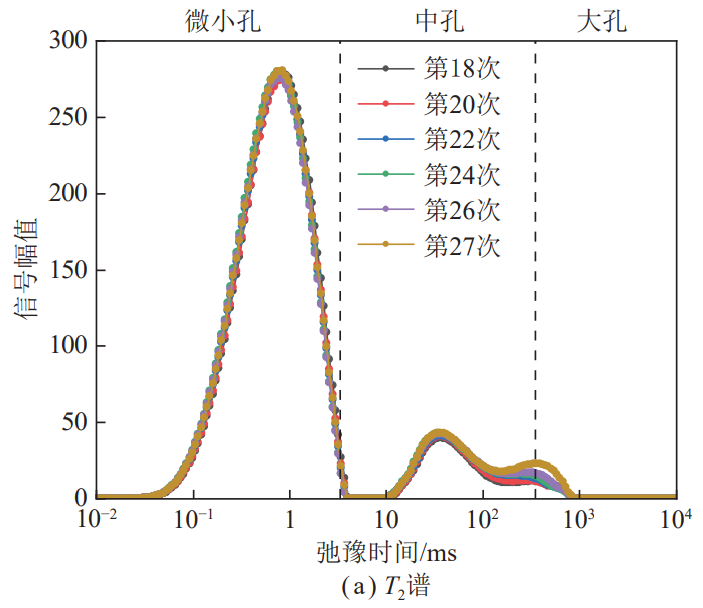 图五 吸附孔激增阶段煤样T2谱演化曲线