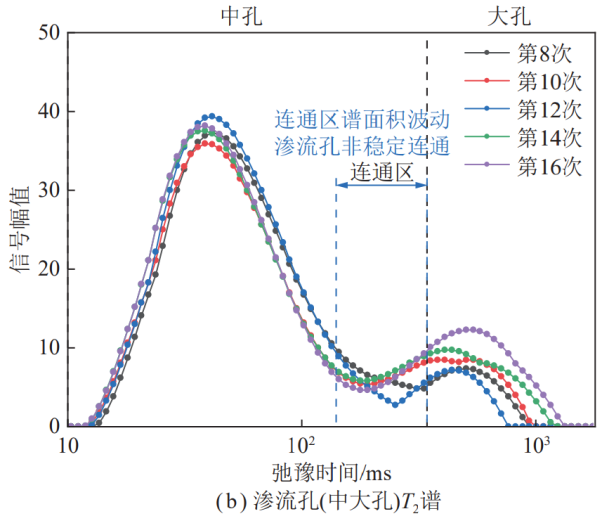 图八 裂隙连通阶段煤样T2谱演化曲线